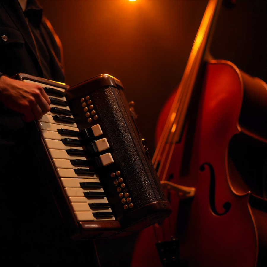 L’accordéoniste Éric Blin, soliste et compositeur invité de l’Orchestre Philharmonique Européen de Paris de 1996 à 2002, et le violoncelliste Adrien Michel, professeur au Conservatoire des Coëvrons et musicien aux nombreuses tournées européennes, proposent un concert en reprenant des œuvres de Caccini, Vivaldi ou encore Bach.